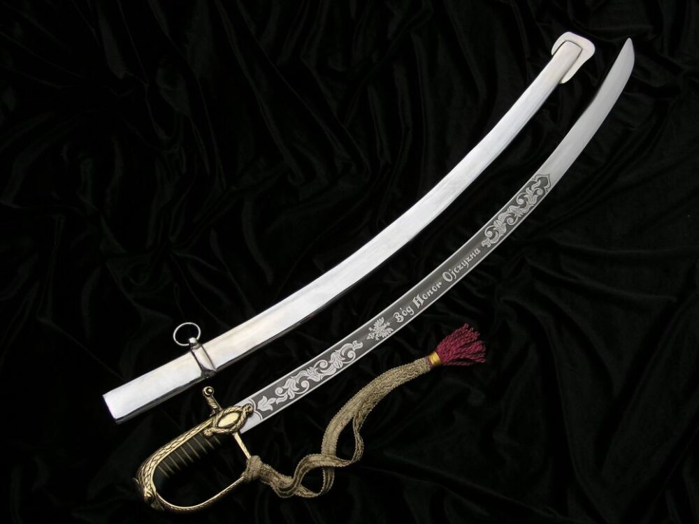 Na ostrzu wygrawerowany jest napis "BÓG HONOR OJCZYZNA".